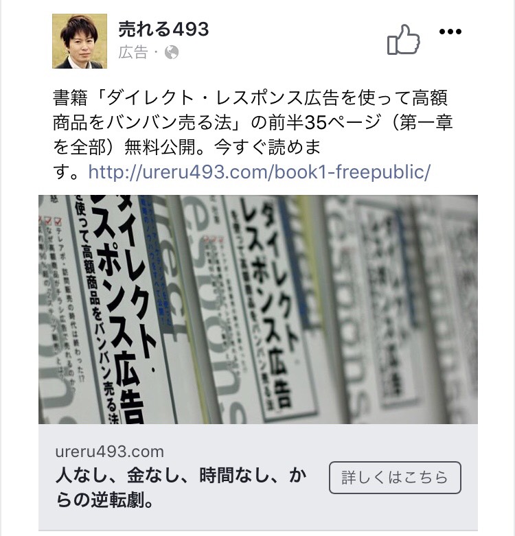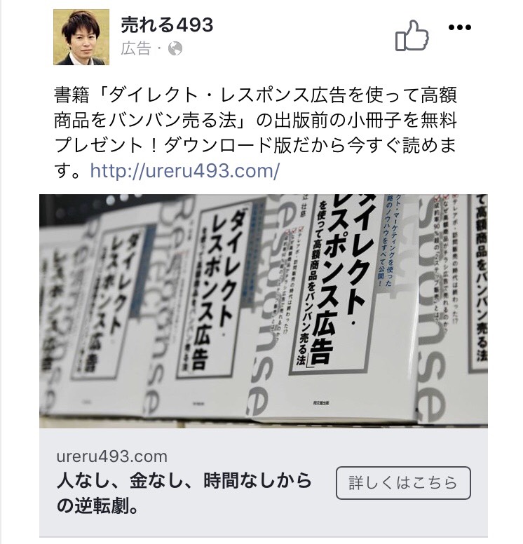 書籍「ダイレクト・レスポンス広告」が発売したと同時期にFacebook広告を開始しました。